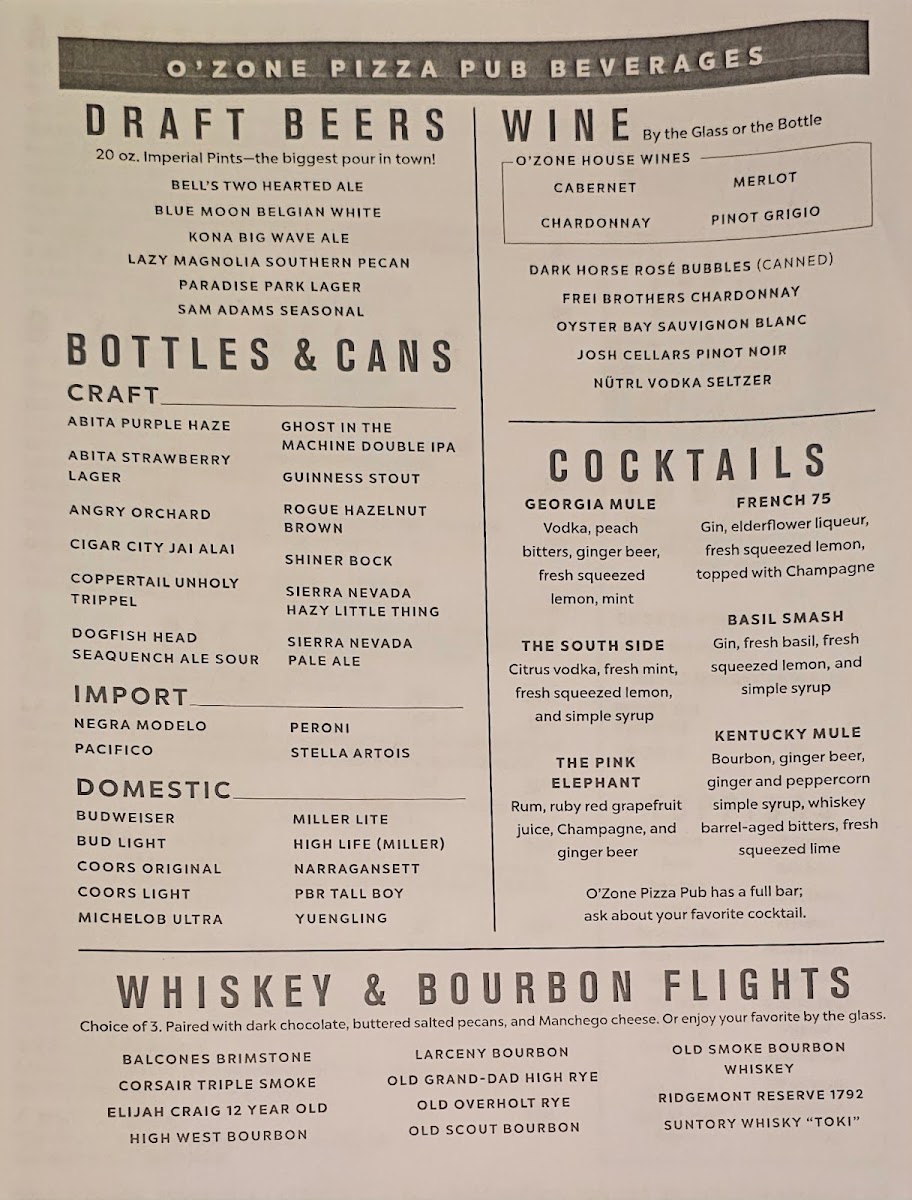 O'zone's house salad mix, citrus-marinated beets and carrots topped with butter roasted pecans, goat cheese crumbles, and shaved radishes. Served with our new local honey vinaigrette