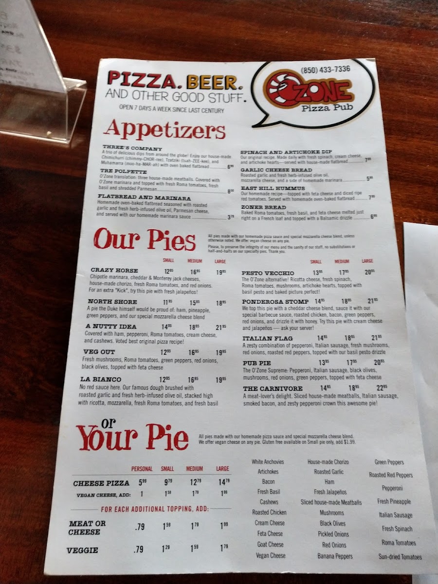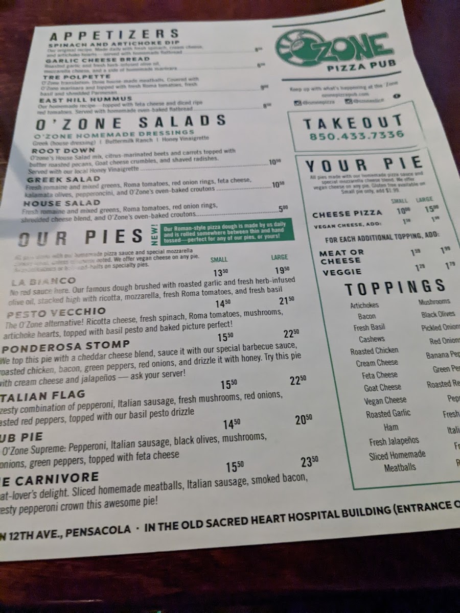 The o'zone supreme: pepperoni, italian sausage, black olives, mushrooms, red onions, green peppers, topped with feta cheese