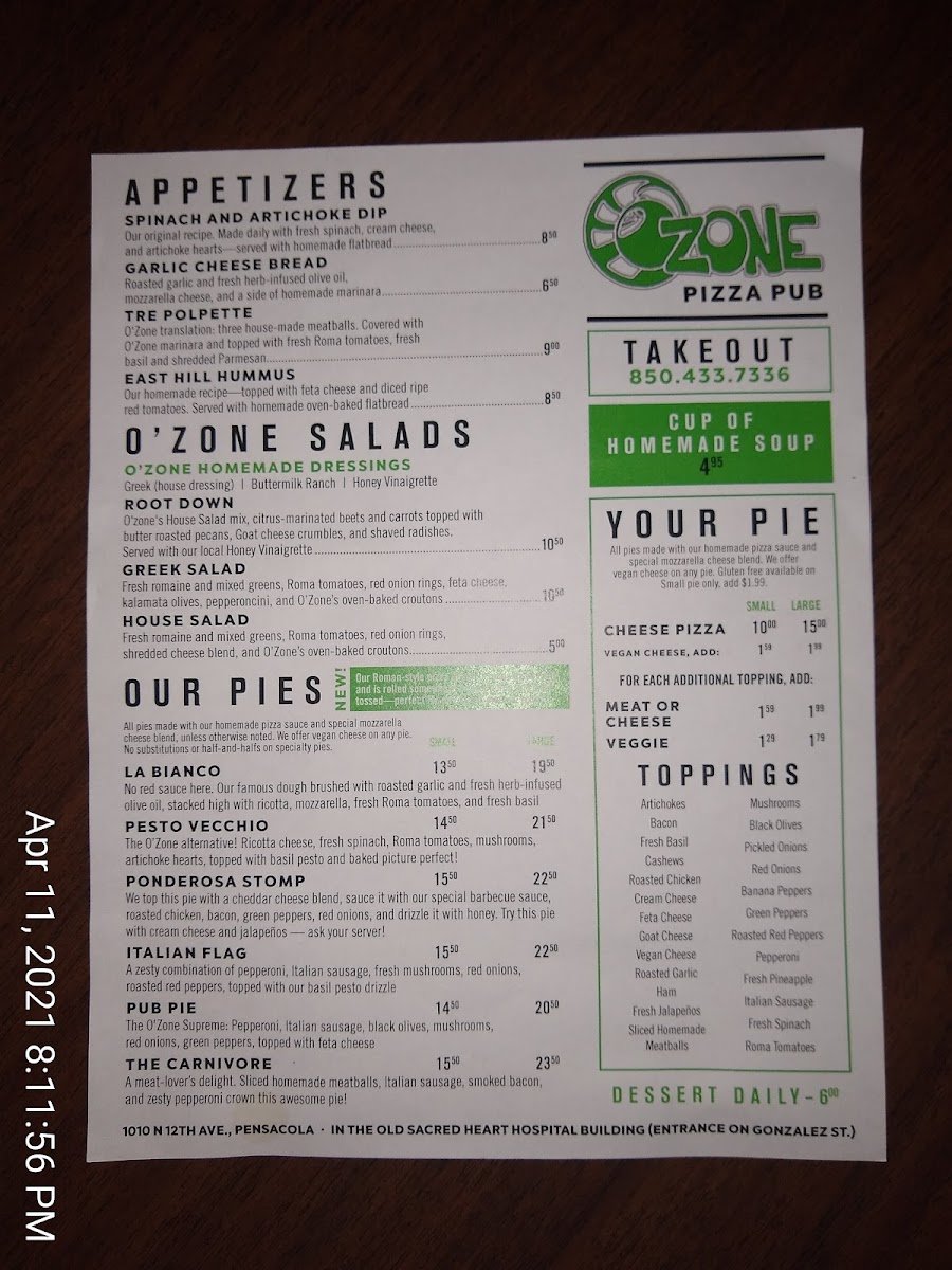 The o'zone alternative! Ricotta cheese, fresh spinach, roma tomatoes, mushrooms, artichoke hearts, topped with basil pesto and baked picture perfect